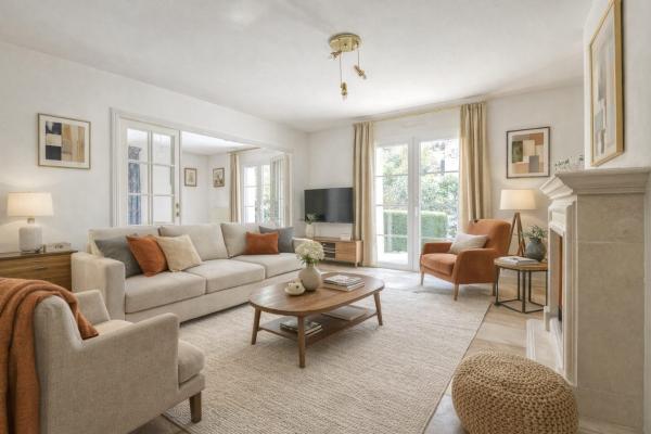 La double réception, agrémentée d’une cheminée, s’ouvre largement sur la terrasse exposée sud et le jardin. La grande cuisine dinatoire, conviviale et fonctionnelle, donne accès à une seconde terrasse ombragée, parfaite pour les repas d’été.Le rez-de-chaussée accueille également une spacieuse suite parentale ainsi qu’un bureau.