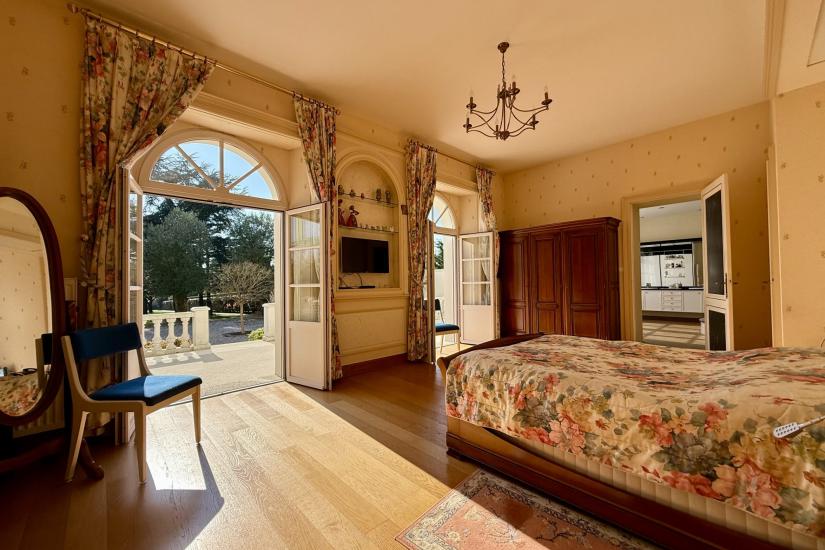 Cette demeure bourgeoise aux beaux volumes offre de multiples espaces de réceptions, des vues panoramiques sur son parc arboré & son étang clos de mur ainsi que sa vaste piscine à toit ouvrant et son espace plus confidentiel avec bar - cave à vin & cuisine/barbecue d'extérieur.