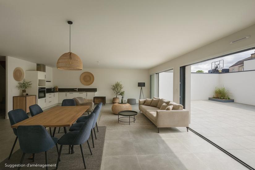 Une grande pièce de vie lumineuse, ouverte sur une terrasse de 55 m² exposée Sud-Ouest, idéale pour profiter du soleil toute la journée.