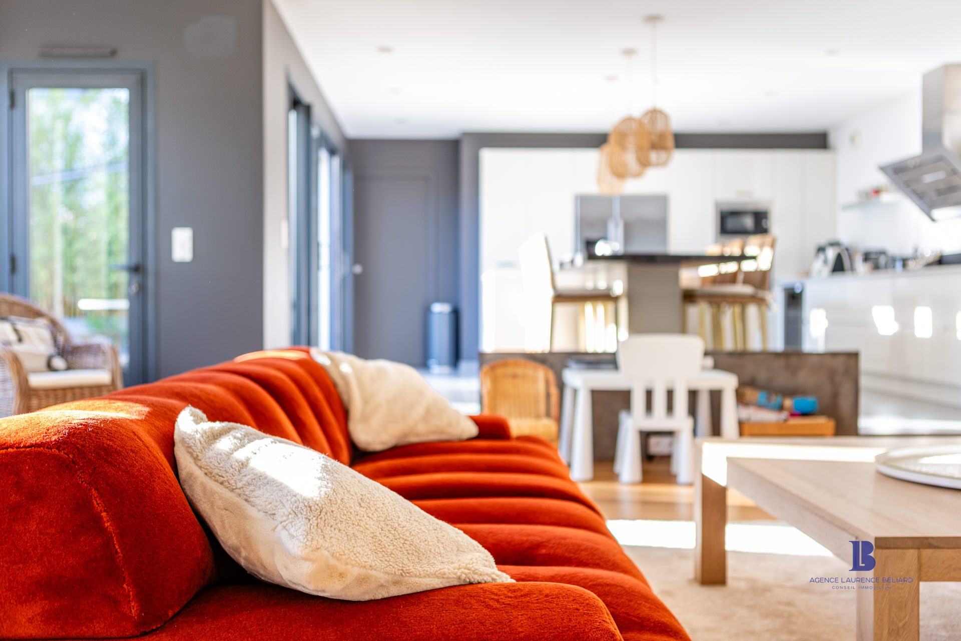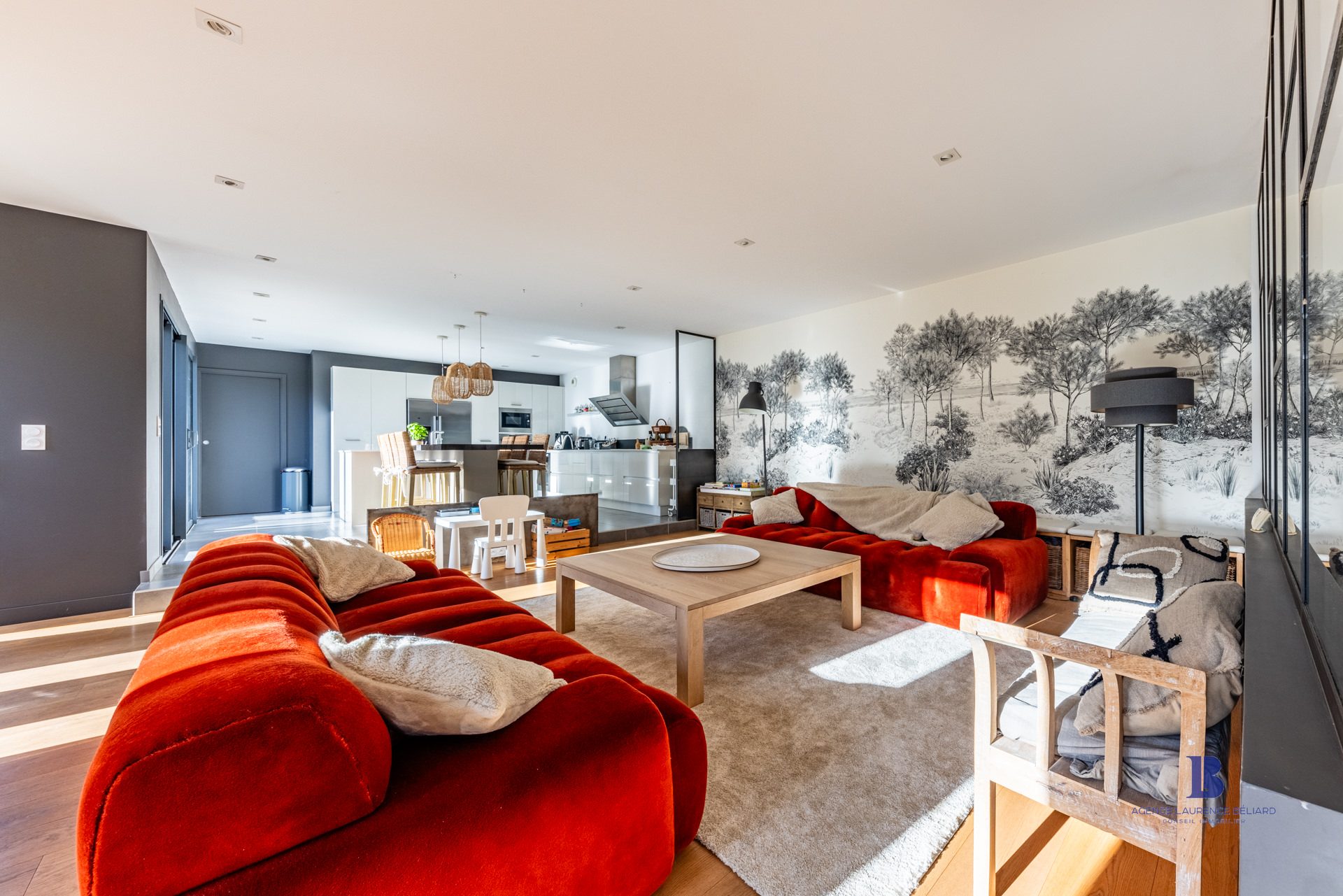 Baignée de la lumière d'un jardin plein Sud, cette maison offre une vaste pièce de vie d'environ 77m2, comprenant un espace bureau ou salon TV avec verrière atelier donnant sur un patio, un salon avec cheminée, une cuisine ouverte aménagée et équipée bénéficiant d'un bel espace dînatoire.