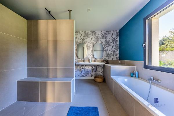 L' espace nuit se compose d'une suite parentale de près de 38m2, d'une salle de bains avec baignoire et douche à l'italienne ainsi qu'un dressing. Les 3 autres chambres dont 2 avec d'une salle d'eau privative sont équipées de vastes rangements.