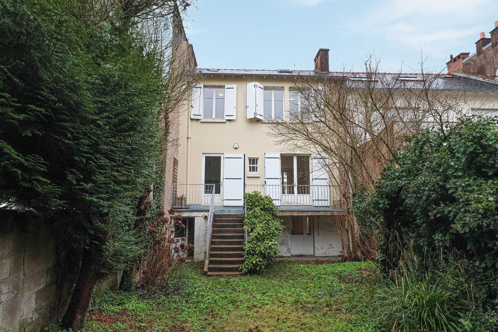 Centre-ville - Rare entre Guist'hau et la Place Canclaux, au calme d'une impasse privée, maison de 1936 d'une surface de 170 m2 offrant une pièce à vivre lumineuse et traversante sur parquet, une cuisine indépendante donnant sur la terrasse Sud et le jardin. La maison propose actuellement 4 chambres et un bureau (5 chambres possible). Rénovation à prévoir. Stationnement privatif devant la maison.