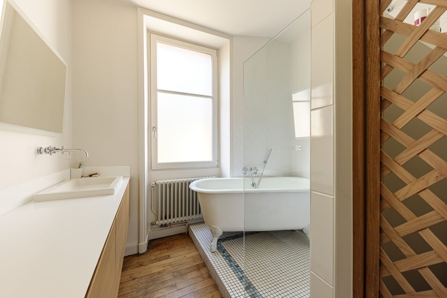 Cette propriété a été entièrement rénovée en 2018 avec des matériaux de qualité, des prestations haut-de-gamme tout en préservant tous les éléments anciens d'une maison bourgeoise, tels que vitraux d'époque, parquet, rosaces & moulures.