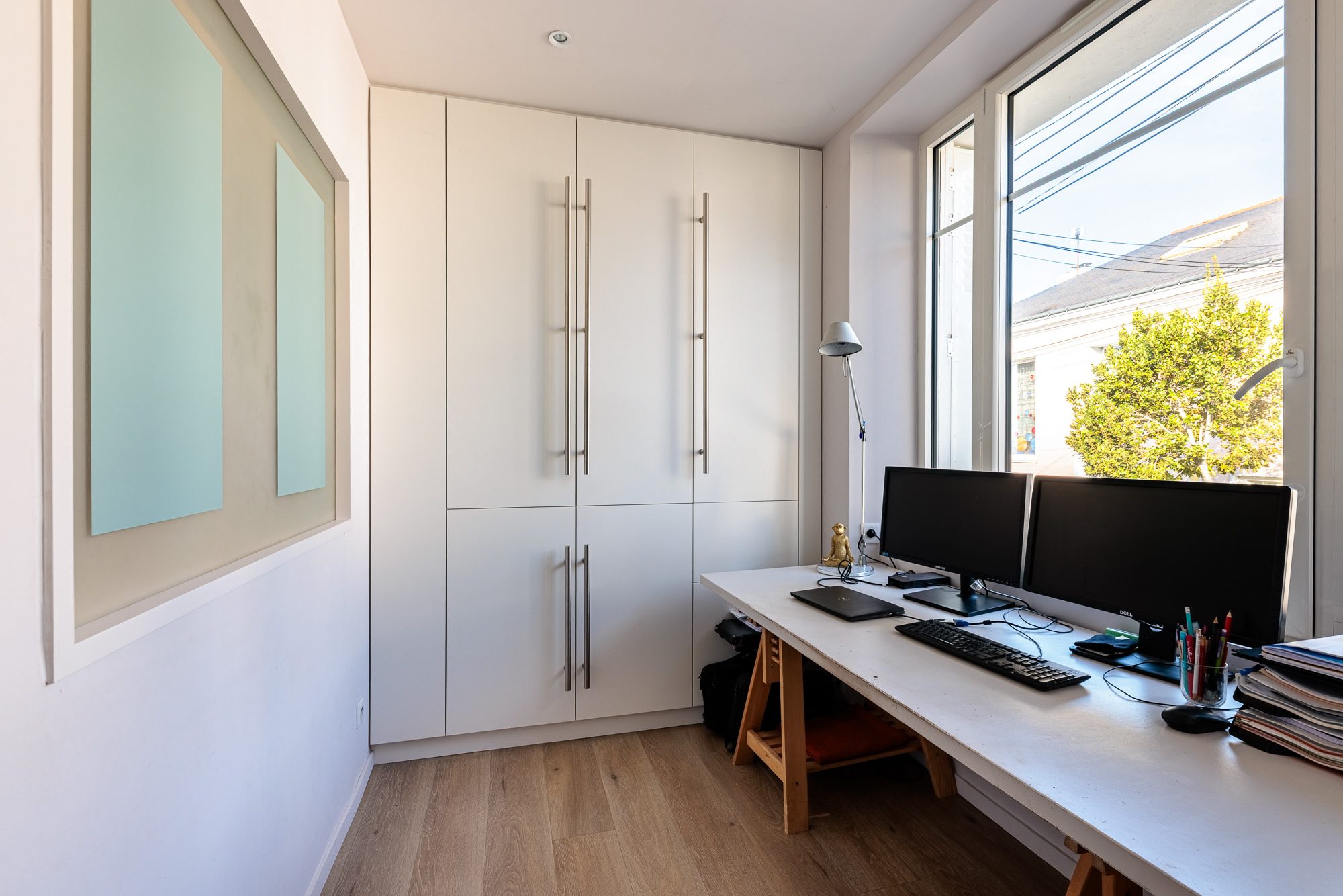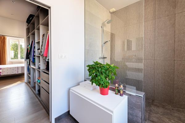 Le premier étage accueille une suite parentale donnant sur le jardin, deux chambres supplémentaires ainsi qu’un bureau.