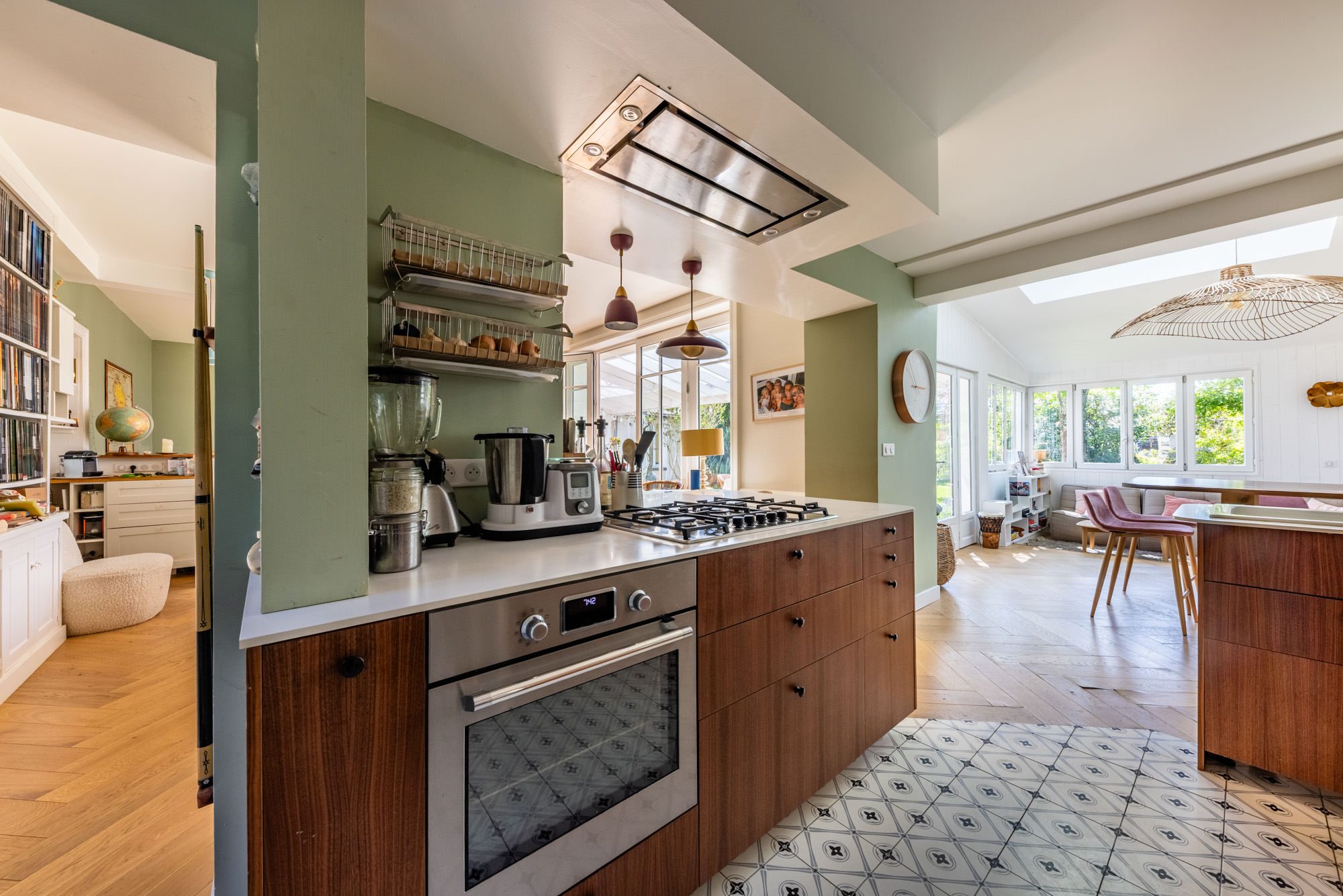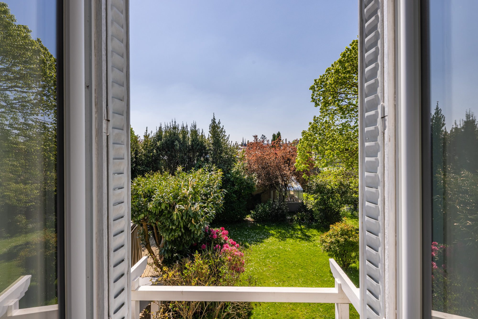 À l’abri des regards, sur une belle parcelle arborée très bien exposée, cette élégante maison allie charme de l’ancien et un cadre de vie paisible.
