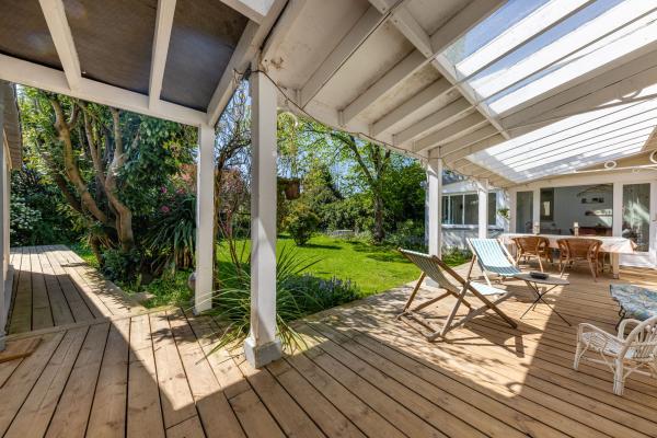 Ses vastes pièces de réception (70 m2), lumineuses et ouvertes sur le jardin, se prolongent naturellement par une grande terrasse Sud-Ouest idéale pour prendre ses repas. Elle dispose de 6 chambres dont une suite parentale de plain-pied sur le jardin avec salle de douche et hammam.