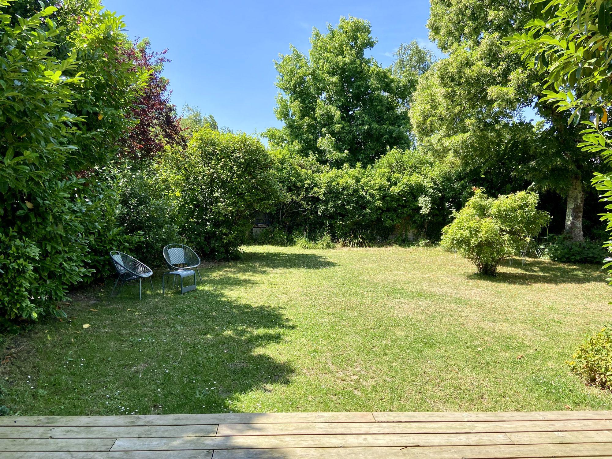 À l’abri des regards, sur une belle parcelle arborée très bien exposée, cette élégante maison allie charme de l’ancien et un cadre de vie paisible.