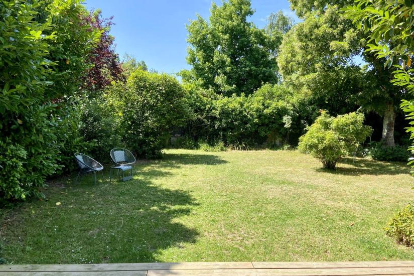 À l’abri des regards, sur une belle parcelle arborée très bien exposée, cette élégante maison allie charme de l’ancien et un cadre de vie paisible.