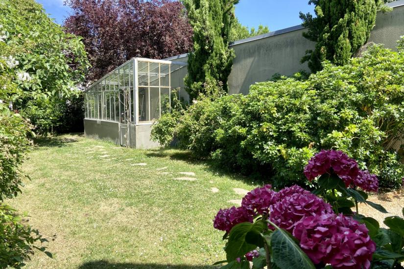 Une seconde terrasse, exposée plein Ouest, vous permettra de profiter des derniers rayons du soleil. La propriété bénéficie également d’une serre ancienne pleine de charme, ainsi qu’une dépendance aménagée en studio au fond du jardin.