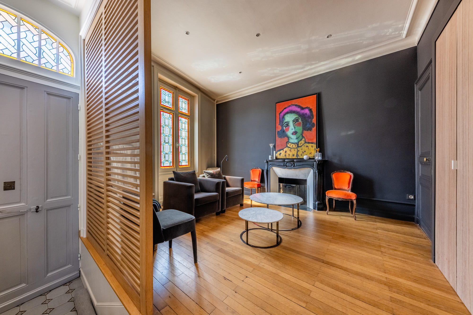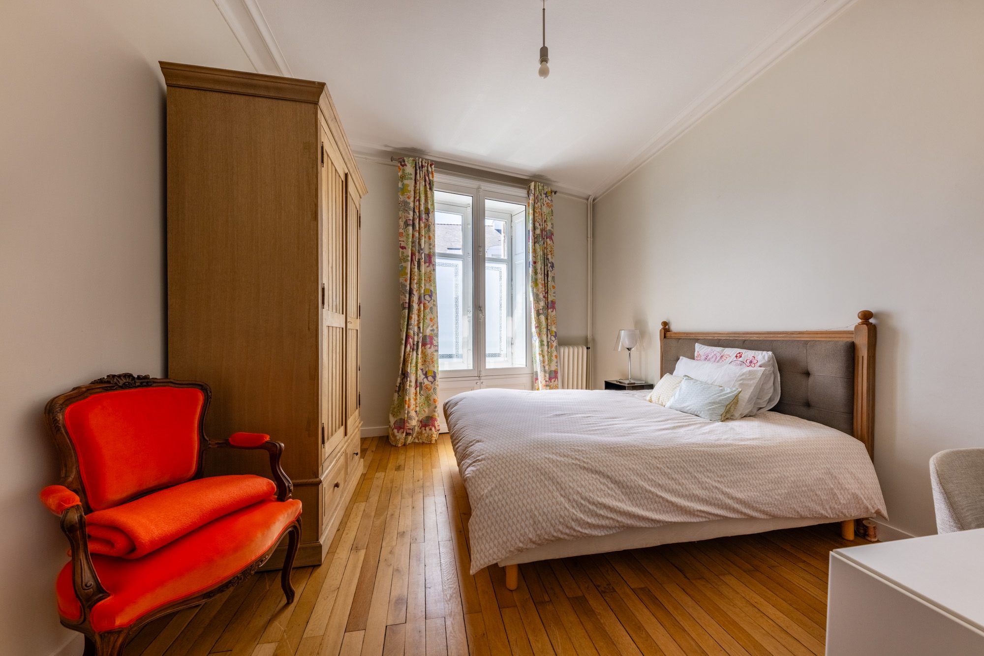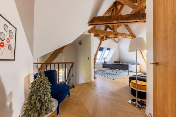 Il se compose au rdc : d'une entrée ouverte sur un petit salon, 2 belles receptions avec cheminée et beaux parquets, une cuisine familiale contemporaine. L'étage enfants distribue 4 grandes chambres , une salle de bains et une salle d'eau. Les parents quant à eux occuperont un étage complet au plafond cathédrale : avec bureau, vaste chambre ouverte sur une jolie terrasse, dressing et très belle salle de bains ( baignoire, douche italienne) . La rénovation et les aménagements de cet espace ont été pensés par une architecte nantaise en 2017.