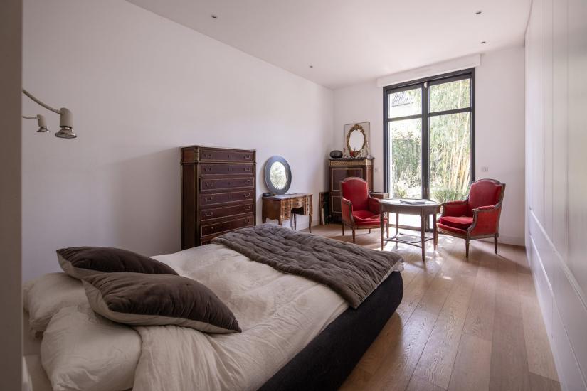 La cuisine, semi-ouverte sur le vaste séjour de 60 m², bénéficie elle aussi d’une très belle vue sur le jardin, idéale pour une vie quotidienne conviviale.L’espace nuit propose en rez-de-jardin une suite ouverte sur l’extérieur. À l’étage, trois chambres supplémentaires ainsi qu’une seconde suite parentale complètent l’ensemble.
