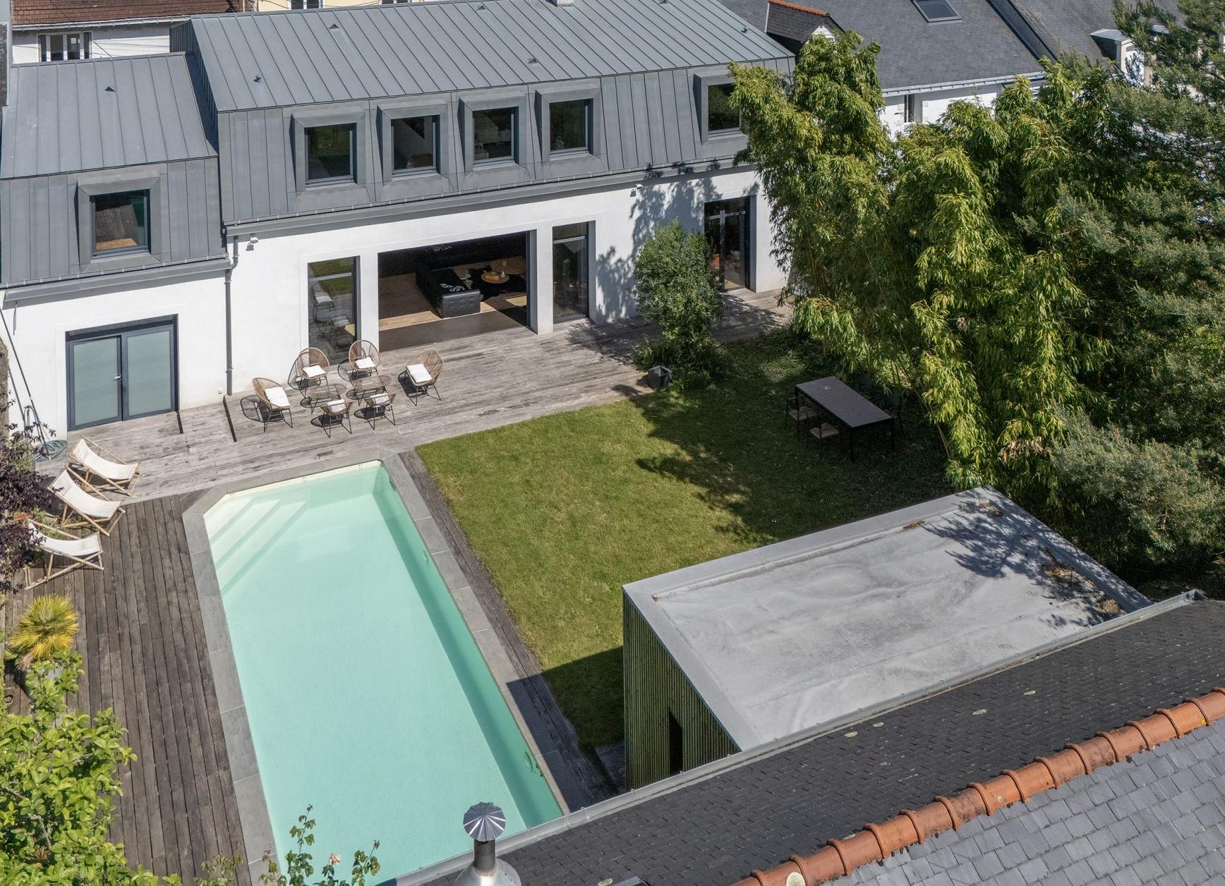 Nantes Mellinet - Belle rénovation par architecte pour cette maison lumineuse et familiale aux volumes généreux. Dès l'entrée, vous serez séduits par sa double réception ouverte sur la terrasse Sud-Ouest créant une belle continuité entre intérieur et extérieur. Sa grande baie vitrée à galandage s'ouvre généreusement sur un beau jardin d'environ 300 m2 et son agréable piscine à l'abri des regards. Semi-ouverte sur le séjour de 60 m2, la cuisine offre également une très jolie vue sur le jardin. Côté nuit, une suite ouverte sur le jardin, à l'étage 3 autres chambres ainsi qu'une deuxième suite parentale. Une dépendance au fond du jardin pourra accueillir un bureau ou une chambre d'amis. Très bonne performance énergétique B - Grand garage double de 45 m2. Coup de coeur pour le calme, la luminosité et les beaux volumes de la maison.