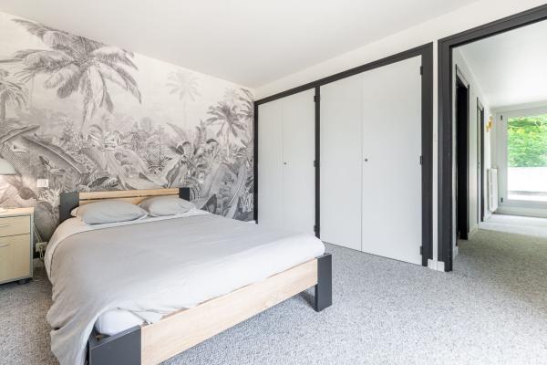 Baignée de lumière tout au long de la journée, la maison développe de superbes volumes avec une vaste suite parentale de plain-pied, de nombreuses chambres disposant chacune de leur salle d’eau, ainsi que de grandes pièces modulables selon vos envies : bibliothèque, salle de sport, espace de réception ou bureaux.