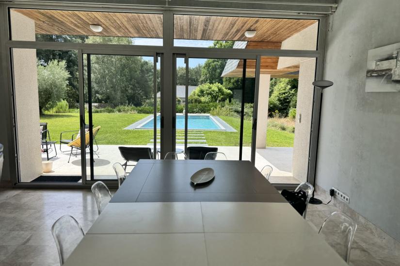 Baignée de lumière tout au long de la journée, la maison développe de superbes volumes avec une vaste suite parentale de plain-pied, de nombreuses chambres disposant chacune de leur salle d’eau, ainsi que de grandes pièces modulables selon vos envies : bibliothèque, salle de sport, espace de réception ou bureaux.