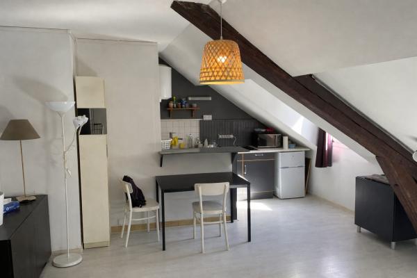 Rue Jean Jaurès - Au 3ème et dernier étage, ce studio meublé comprend une pièce de vie avec cuisine aménagée et équipée (plaques électriques, frigo, machine à laver), et une salle d'eau avec WC.