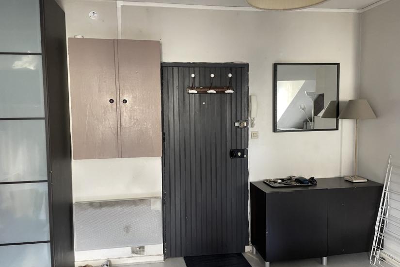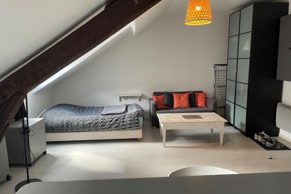 Rue Jean Jaurès - Au 3ème et dernier étage, ce studio meublé comprend une pièce de vie avec cuisine aménagée et équipée (plaques électriques, frigo, machine à laver), et une salle d'eau avec WC.