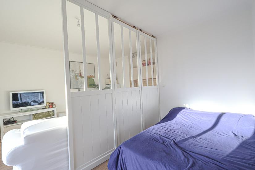 Au cœur de Nantes, à proximité du Boulevard Guist'hau, cet appartement meublé, au 2ème étage, se compose d'une entrée desservant une salle de bain avec WC, une cuisine (micro-ondes, plaques de cuisson, réfrigérateur) ouverte sur la pièce à vivre et d'une verrière séparant l’espace nuit.