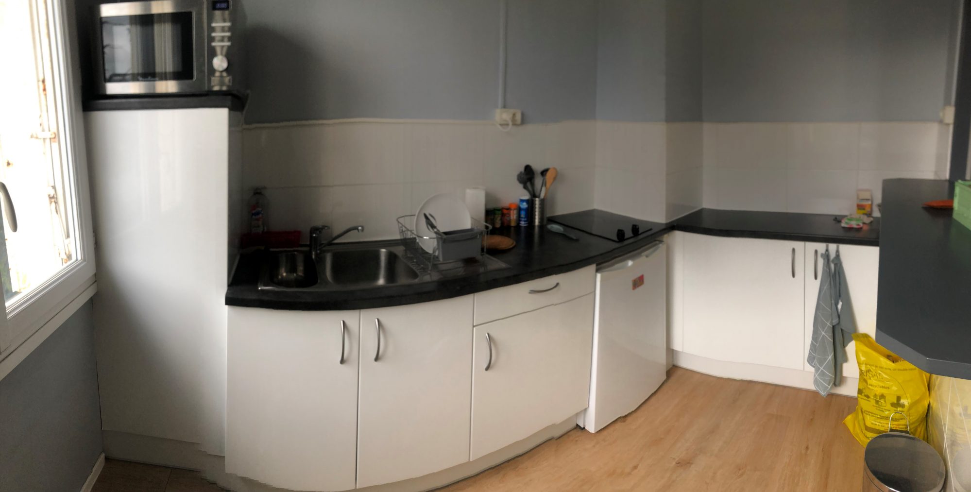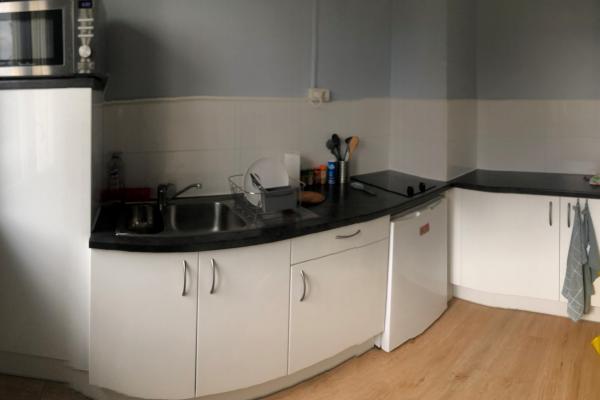 composé d'une entrée avec un grand placard, d'une cuisine ouverte aménagée et équipée ( plaque de cuisson, réfrigérateur, four micro ondes, lave linge), d'un séjour lumineux, d'une chambre, d'une salle douche, et d'un WC.