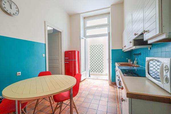 Au cœur de Nantes, à proximité de la place Aristide Briand, cet appartement meublé, au rez-de-chaussée, se compose d'une entrée, d'un séjour salon, d'une cuisine aménagée et équipée (four, micro-ondes, plaques de cuisson, réfrigérateur) donnant sur une cour intérieure privative, d'une belle chambre avec salle d'eau et d'un WC séparé.