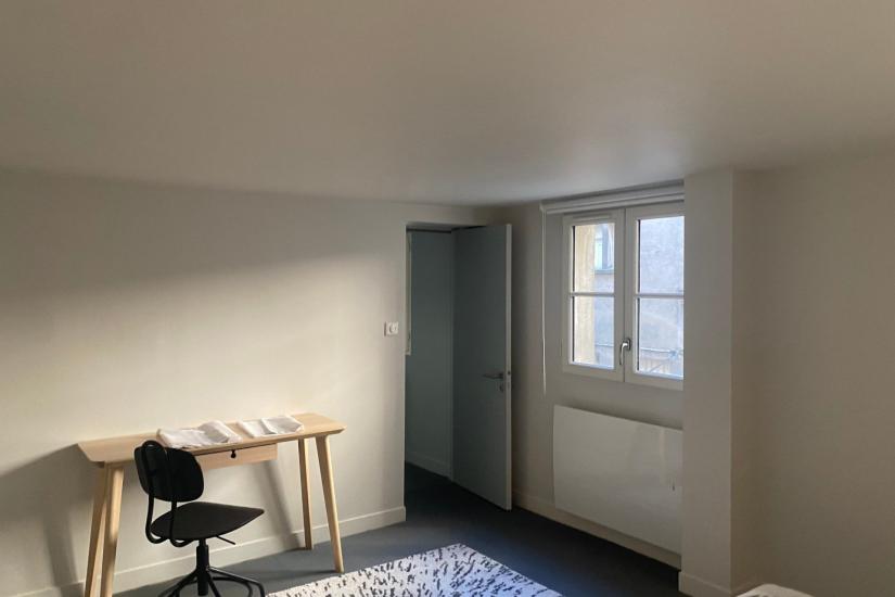 Nantes centre-ville (proche Graslin), dans une copropriété d'exception, un T2 en duplex de 54.54 m² comprenant une entrée avec placard, une pièce de vie avec cuisine aménagée et équipée (plaque de cuisson, hotte, réfrigérateur, four et lave-vaisselle). A l'étage, une lingerie, une salle d'eau avec wc et une chambre avec dressing.