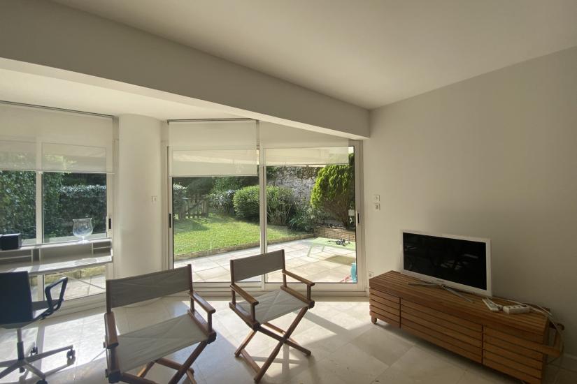 Aristide Briand- Dans un passage privé, au calme , vaste 2 pièces meublé de 77m2 comprenant une entrée avec placard, un spacieux séjour de 31m² ouvrant sur une terrasse et jardin privatif, une grande chambre avec dressing, une cuisine séparée aménagée et équipée (plaques de cuisson, réfrigérateur, congélateur, hotte aspirante, lave linge), une salle de bain avec baignoire et douche, un WC séparé.