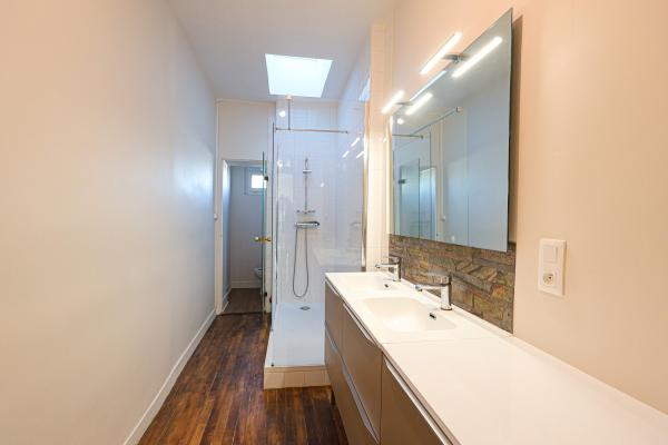 Il se compose d'un séjour avec cheminée et parquet ancien, d'une cuisine aménagée et équipée, de vastes chambres avec placard, d'un dressing, d'une arrière cuisine et d'une salle d'eau.