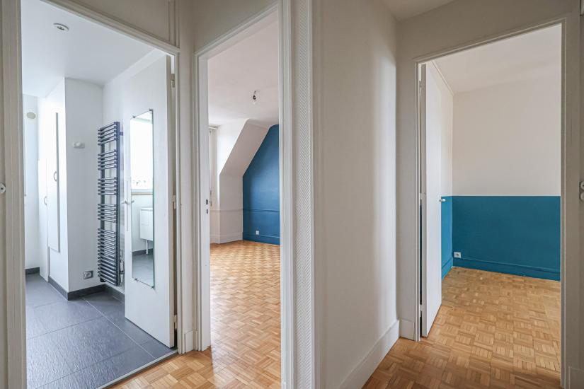 Copernic - Appartement lumineux de 117 m² comprenant de beaux volumes et une vue dégagée sur les toits de Nantes. En dernier étage avec ascenseur, il se compose d'un grand séjour sur parquet, d'une cuisine équipée avec une buanderie attenante, 3 chambres de bonne taille avec rangement. Situation recherchée en plein cœur du triangle d'or nantais, au pied des commerces et des transports. Cave et local à vélo.