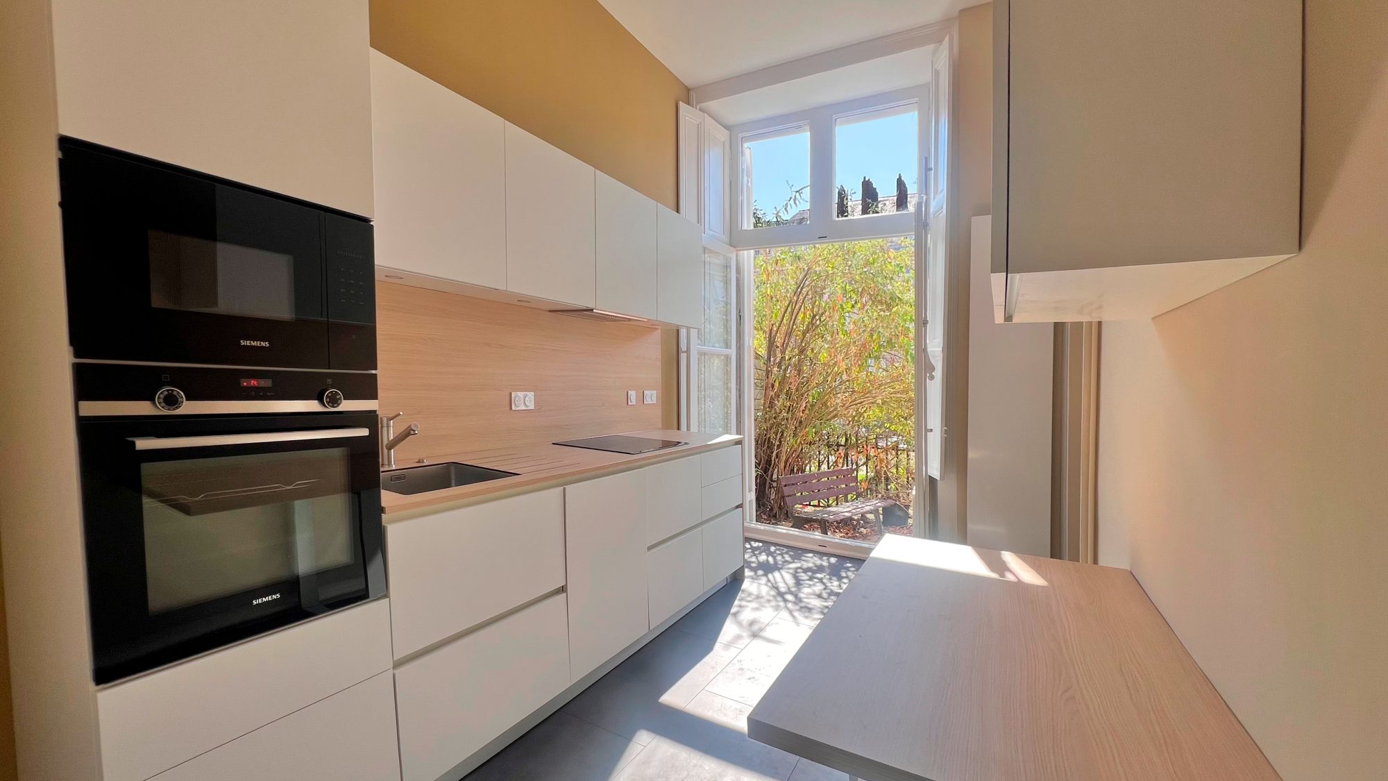 et une exceptionnelle terrasse plein sud d’environ 50 m², véritable havre de paix sur le mythique Cour Cambronne.