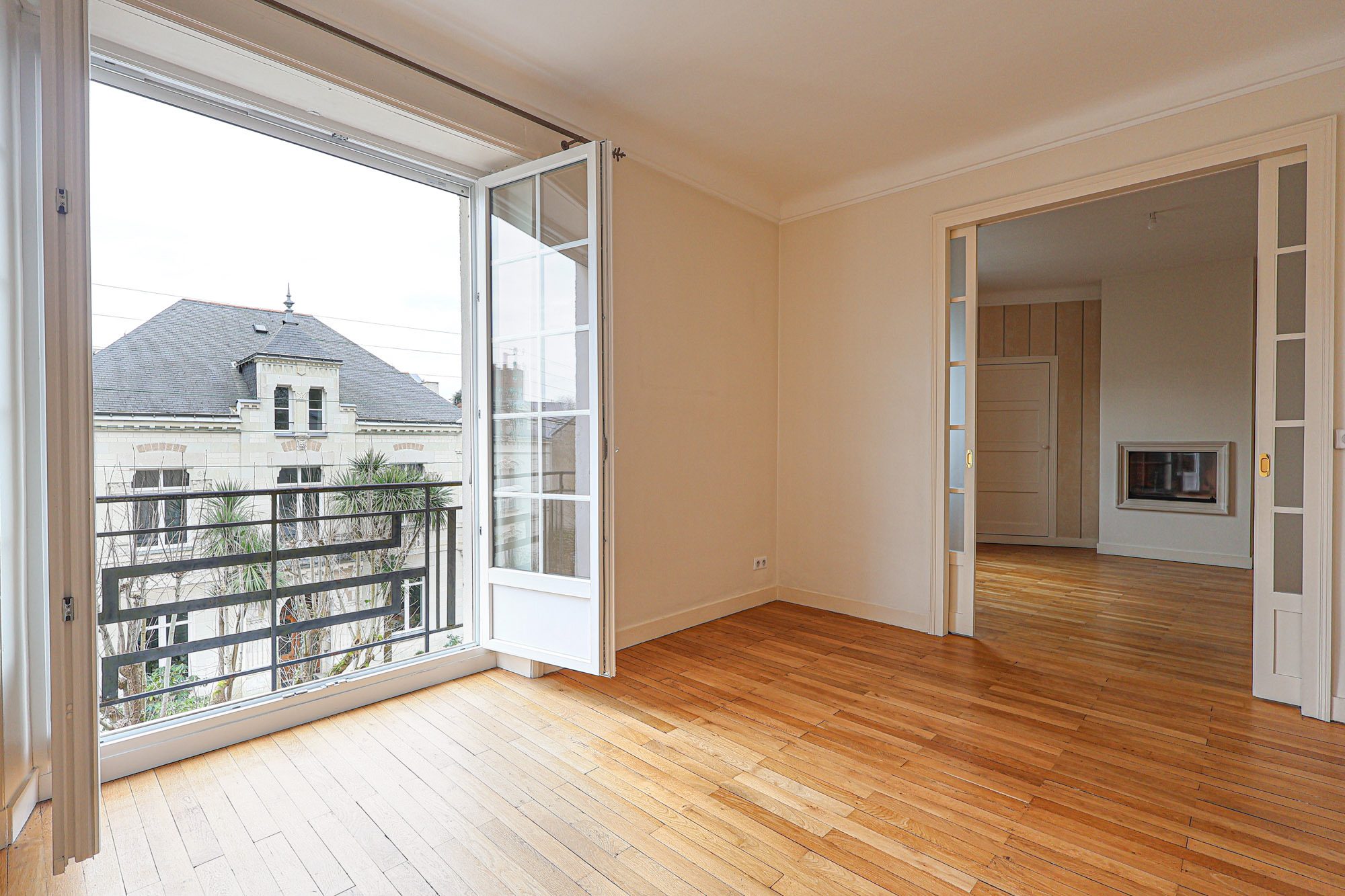 Situé au deuxième étage avec ascenseur, il dévoile une superbe pièce de vie lumineuse, exposée sud-ouest, ouverte sur une vue entièrement dégagée qui offre une sensation d’espace peu commune en cœur de ville. Le parquet, la cheminée et les volumes généreux confèrent à l’ensemble une atmosphère élégante et chaleureuse.