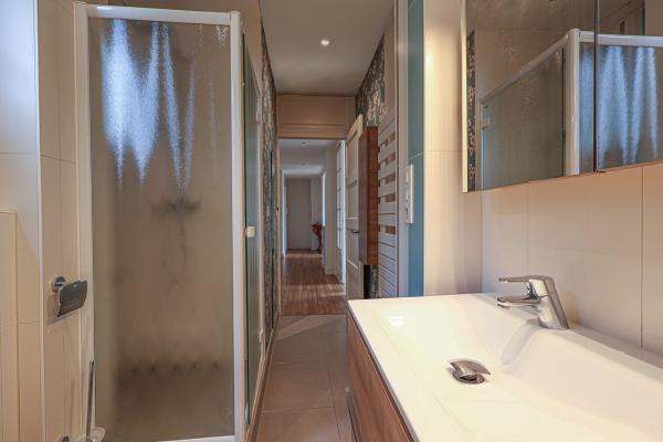 L’espace nuit se compose : d’une chambre/bureau ouverte sur le séjour avec cheminée, de deux belles chambres avec grands placards, d’une salle de bain avec douche et WC ainsi que d’un WC indépendant.