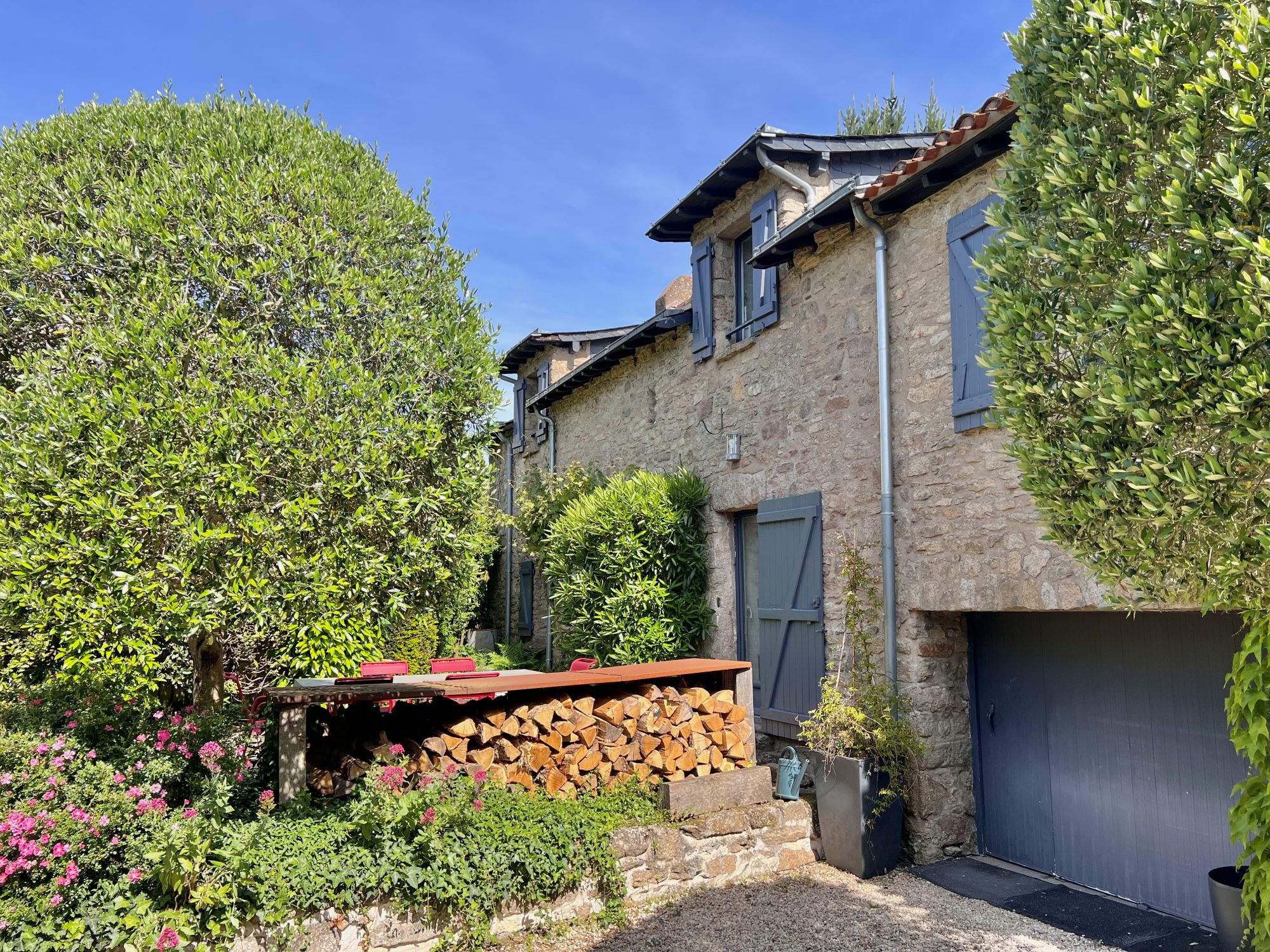 Un garage couvert, stationnement de 3 voitures sur la parcelle et cave à vin.